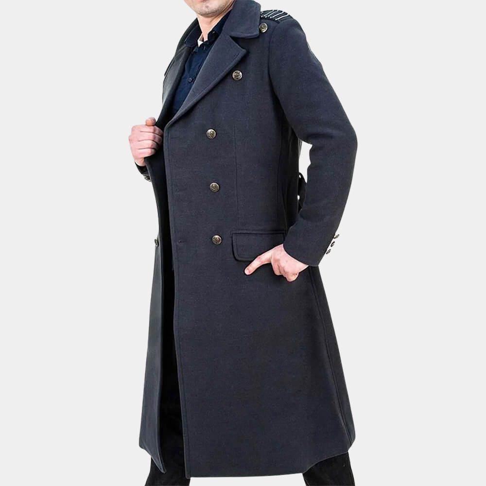 The coat carries all the trademarks of a traditional trench—double breasted buttons, wide lapels, and a full length cut—but it’s reworked in wool, which adds warmth and structure. The grey tone keeps it versatile, while details like epaulettes and fitted tailoring connect back to its military origins. Trench coats themselves were born out of army outerwear, later evolving into timeless fashion staples, which makes this choice perfect for a character who embodies strength and style. Its significance lies in how it grounds Jack’s flamboyant personality with a practical, authoritative layer. For fans, this coat is ideal for cosplay or conventions, but it also works as a bold winter piece when you want to bring a touch of sci fi flair into everyday life.