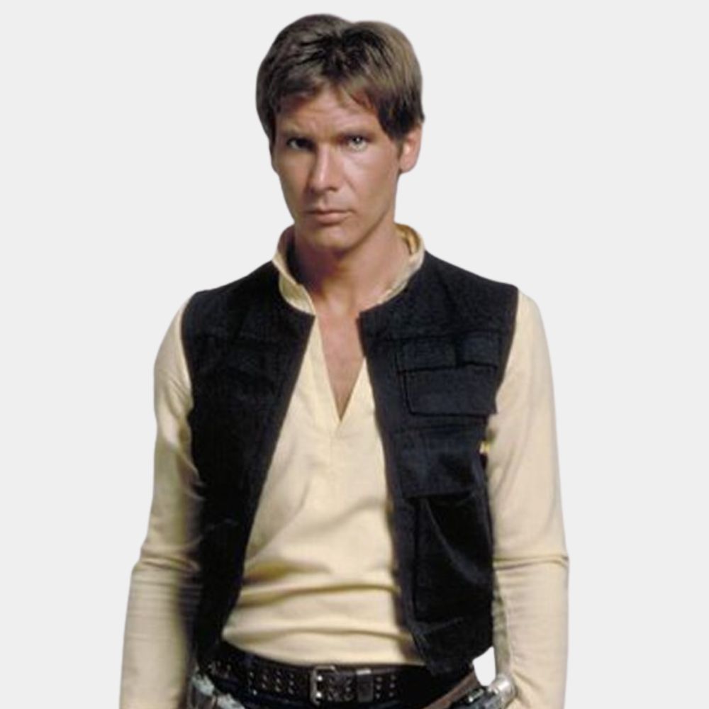 Han Solo’s black leather vest from Star Wars is one of those pieces that instantly defines his character. Worn by Harrison Ford, it became a core part of the smuggler’s signature look—practical, understated, and effortlessly cool. The vest works perfectly for a character who lives by his own rules, relying on quick thinking and charm rather than flashy uniforms. Its stripped down design reflects Han’s independence, showing he’s not tied to the military order of the Empire or the polished ranks of the Rebels. Instead, it captures his roguish spirit, making it the perfect outfit choice for a man always ready to jump into adventure.