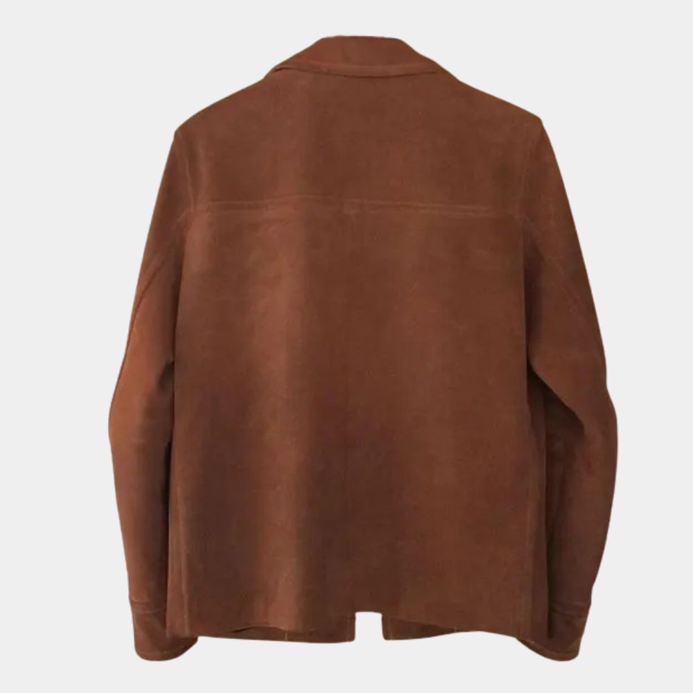 The jacket is all about classic design, with clean tailoring, front button closure, and welt pockets that make it versatile without overcomplicating things. Suede as a material brings a softer texture compared to polished leather, which makes the piece feel approachable and in tune with the easygoing West Coast vibe. Jackets like this trace their roots to mid century casual wear, often tied to artists and free spirits who valued both comfort and understated style. Its significance lies in how it connects fashion to culture, echoing the way music did in that same era. For fans, it’s the kind of jacket that works perfectly for concerts, coffeehouse nights, or casual weekends when you want to channel vintage cool without trying too hard.