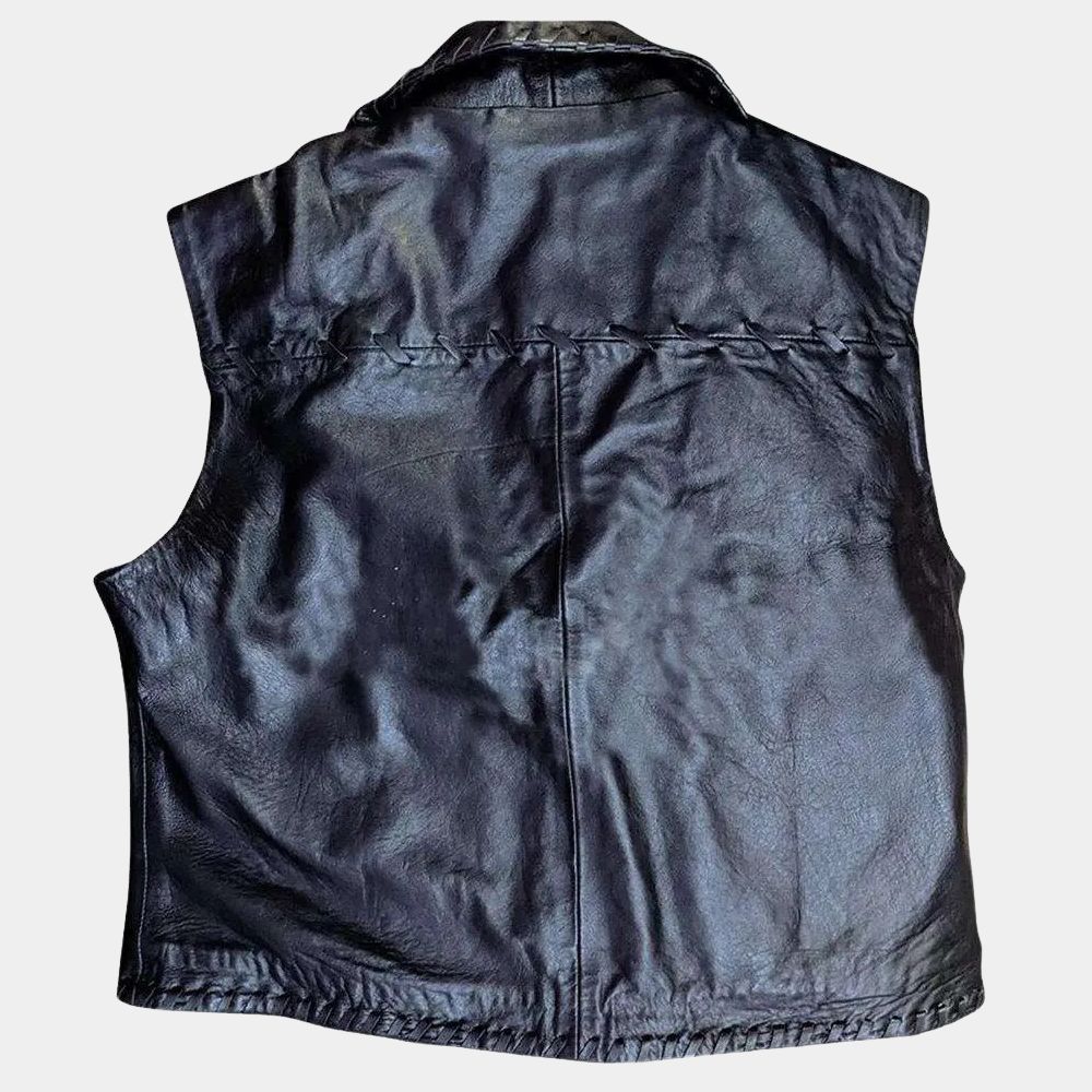 The design of the vest is rooted in classic Western wear, with clean lines, a simple front, and a durable leather build meant to handle the demands of daily life on horseback. Its black finish gives it a sharper edge than the typical brown ranch wear, helping Trampas stand out as someone with a bit more presence and personality. Vests like this were a staple in the late 19th century, designed for layering and practicality, but they also carried a sense of style that became iconic in Western film and TV. For fans today, this piece is perfect for cosplay, Western reenactments, or even as a stylish nod to cowboy culture when paired with denim and boots in everyday wear.