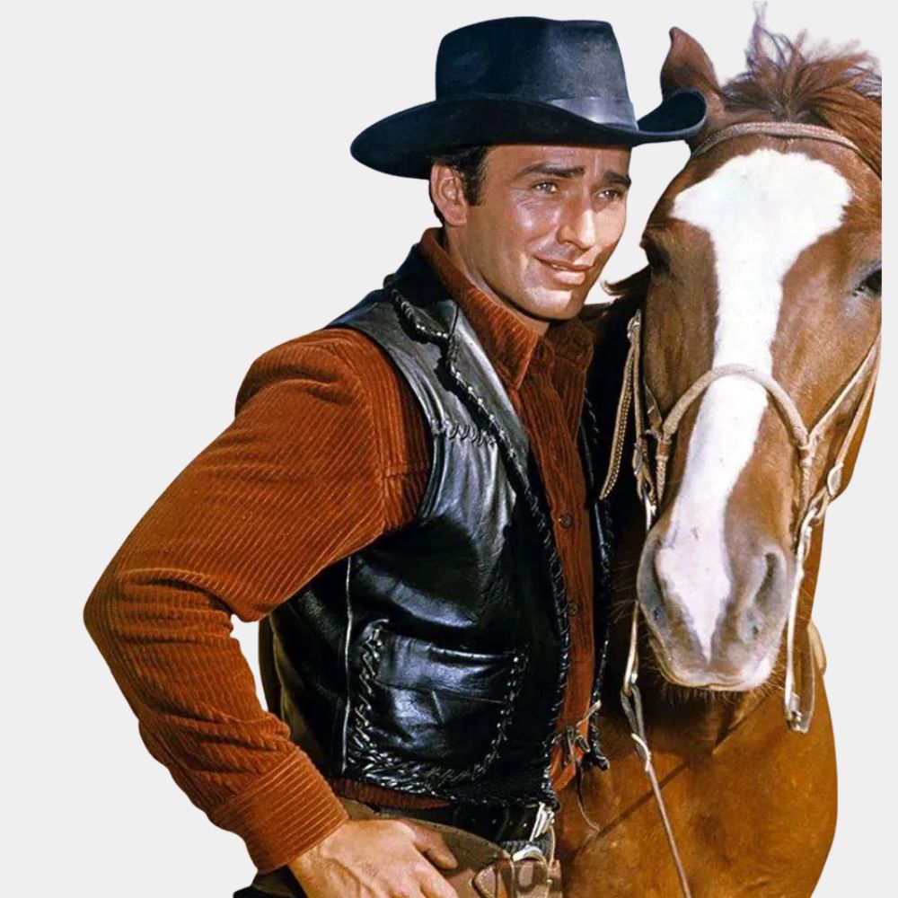 Trampas from The Virginian, played by James Drury, is the kind of character who embodies the charm and grit of the old American West, and his black leather vest became a signature piece of that image. The vest fits his role as a cowboy who could be both playful and serious, someone equally at home on the ranch or in a saloon. It reflects the spirit of the frontier—practical, tough, and effortlessly stylish—while also giving him that recognizable look that fans came to associate with him. More than just clothing, the vest added to his identity, making him feel authentic to the time period and the lifestyle of a working cowboy.