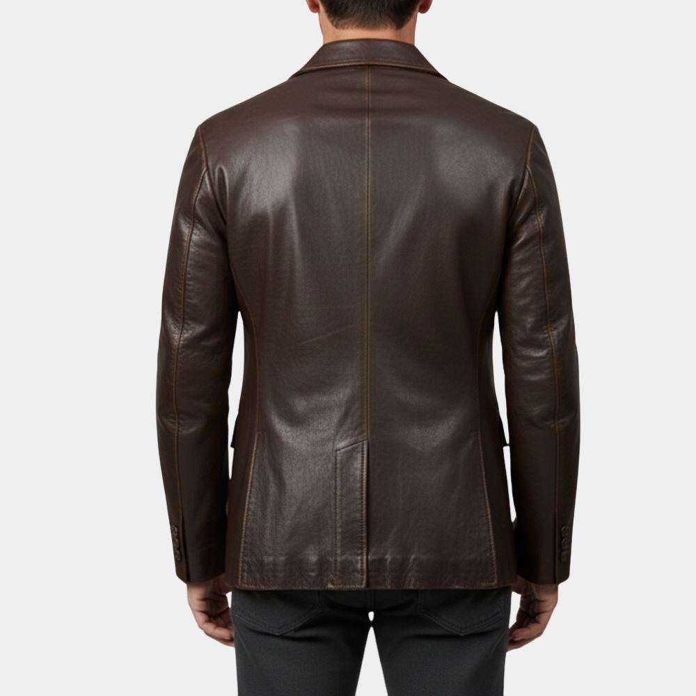 The blazer is designed with a single breasted cut, giving it a tailored feel while the brown leather adds texture and depth that elevate it beyond a typical jacket. Details like the structured shoulders, notch lapels, and clean front closure keep it classic but with an edge, striking the balance between formalwear and outerwear. Leather blazers trace their origins to mid century fashion when traditional tailoring met counterculture rebellion, and that mix of refinement and toughness is exactly why they still stand out.