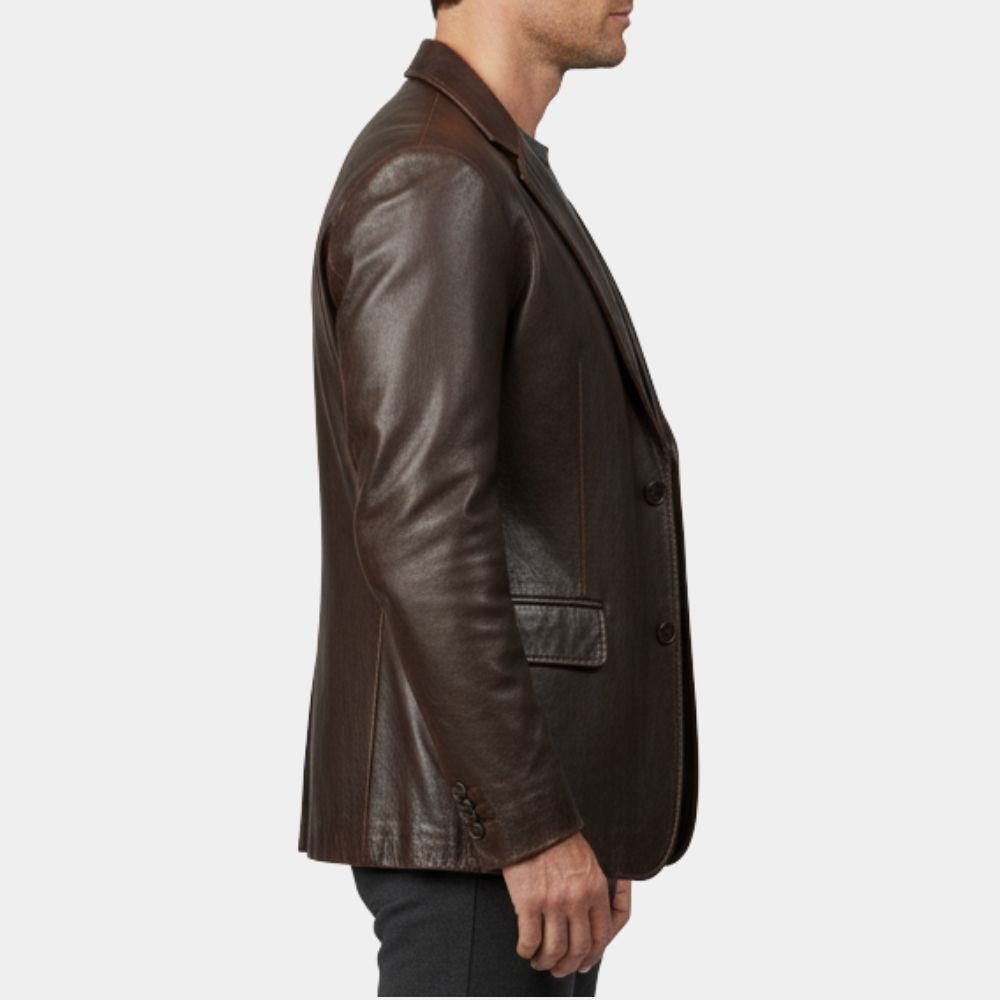 Mark Wahlberg Leather Blazer | Parker Brown Single Breasted Leather Blazer