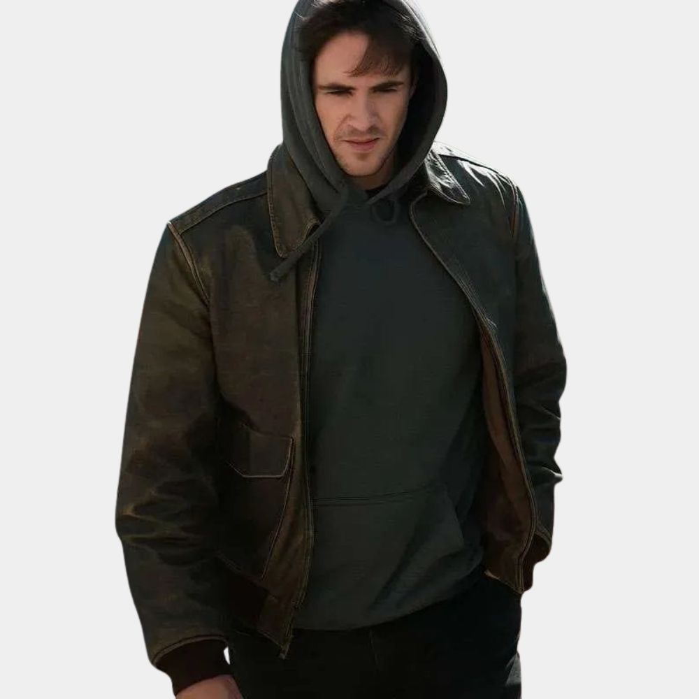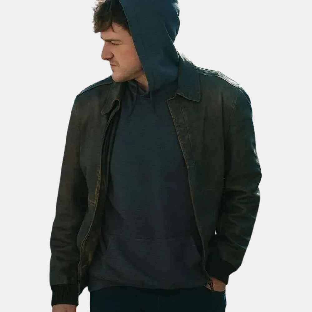 In Halloween Aftermath Ryan Jaske as Cole wears an A2 bomber tan leather jacket that instantly adds depth to his character. Cole is written as someone who carries both grit and vulnerability, and the jacket captures that balance perfectly. The A2 bomber has a long history of being tied to resilience and bravery, originally made for military aviators, which makes it a natural fit for a character navigating chaos and survival. The tan tone softens the edge just enough to show Cole’s human side, reminding viewers that underneath the toughness he is still deeply relatable. It is a wardrobe choice that reflects his journey through fear, strength, and the will to endure.