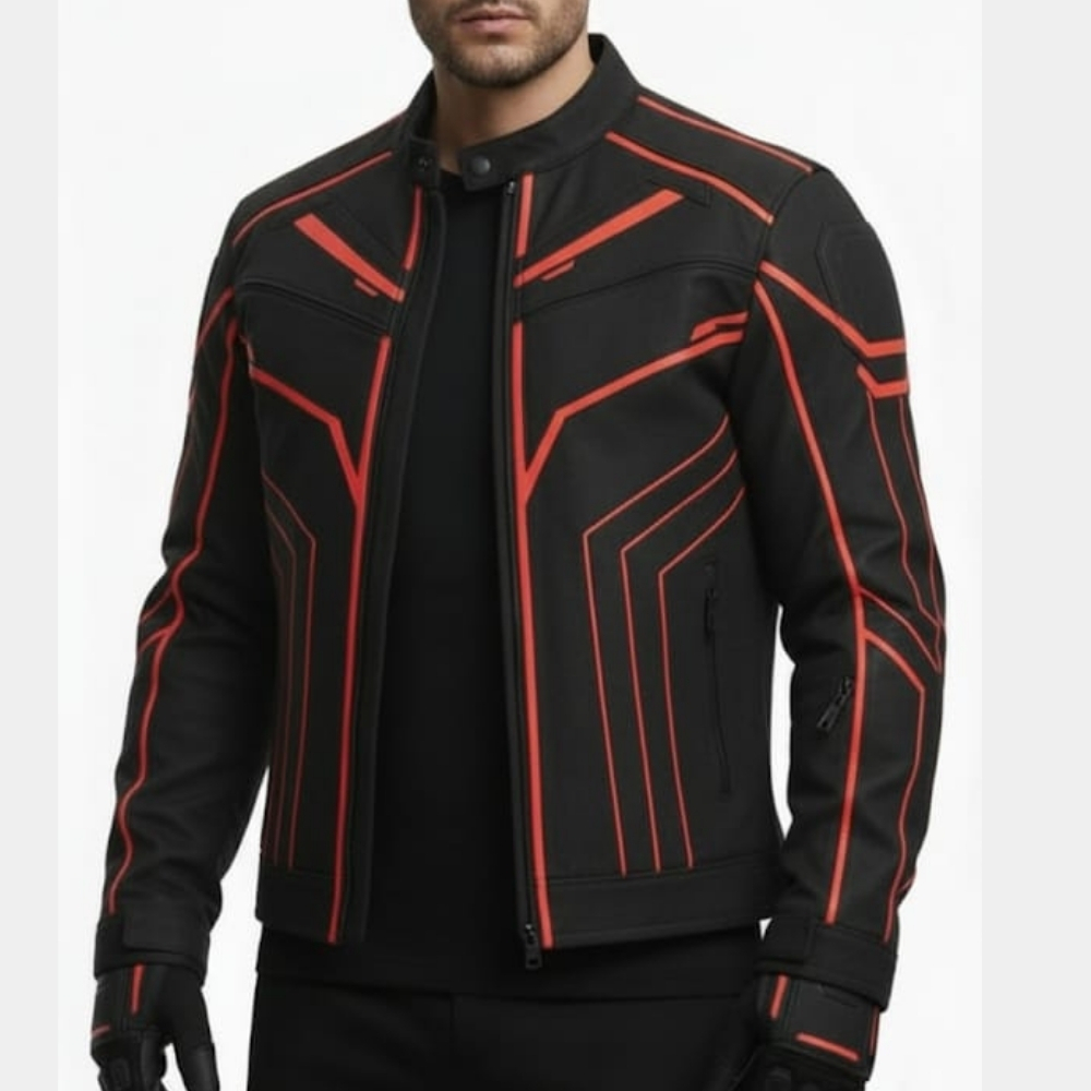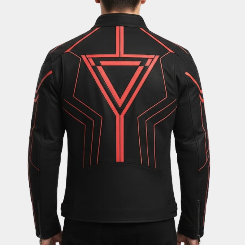 If you’re a fan of the sleek, futuristic vibes of Tron and the rebellious spirit of a classic cafe racer, this Tron Ares-inspired leather biker jacket is made for you. It’s all about that perfect blend of sci-fi edge and vintage cool, giving you a jacket that stands out whether you’re cruising through the city or just out for some casual style points. The design takes cues from Tron’s red sharp stripes and glowing accents, but with a street-ready twist that keeps it grounded and wearable every day.
