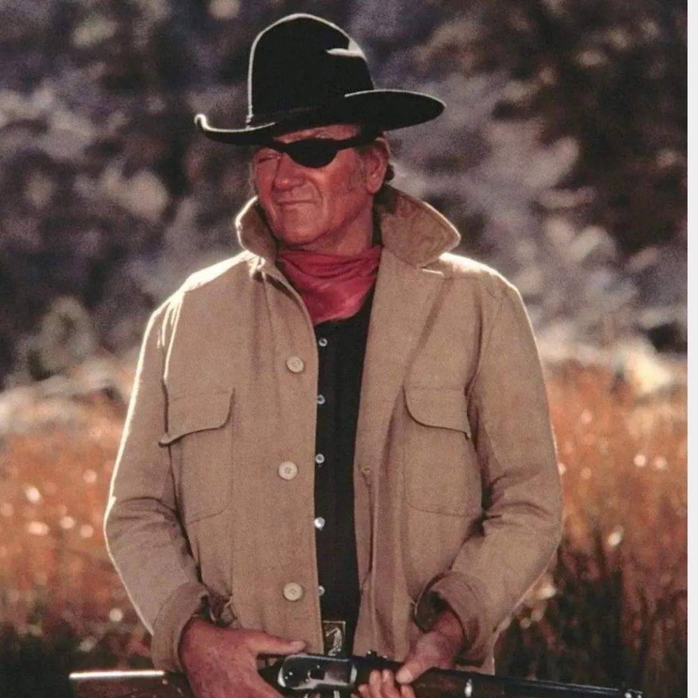 The design keeps things classic with its long cut, button front, all details that give it that timeless western workwear feel. Made from cotton, it has a lighter and more functional quality compared to heavier fabrics, which fits the idea of a coat worn on long days of ranch work or cattle drives. Pieces like this trace their origin back to the 19th century frontier, where durable cotton and canvas coats were common among ranchers and travelers. Its significance lies in its authenticity—practical, dependable, and tied to tradition. For fans, this coat is a great choice for western themed events, casual outdoor wear, or as a subtle statement piece that channels John Wayne’s enduring cowboy legacy.