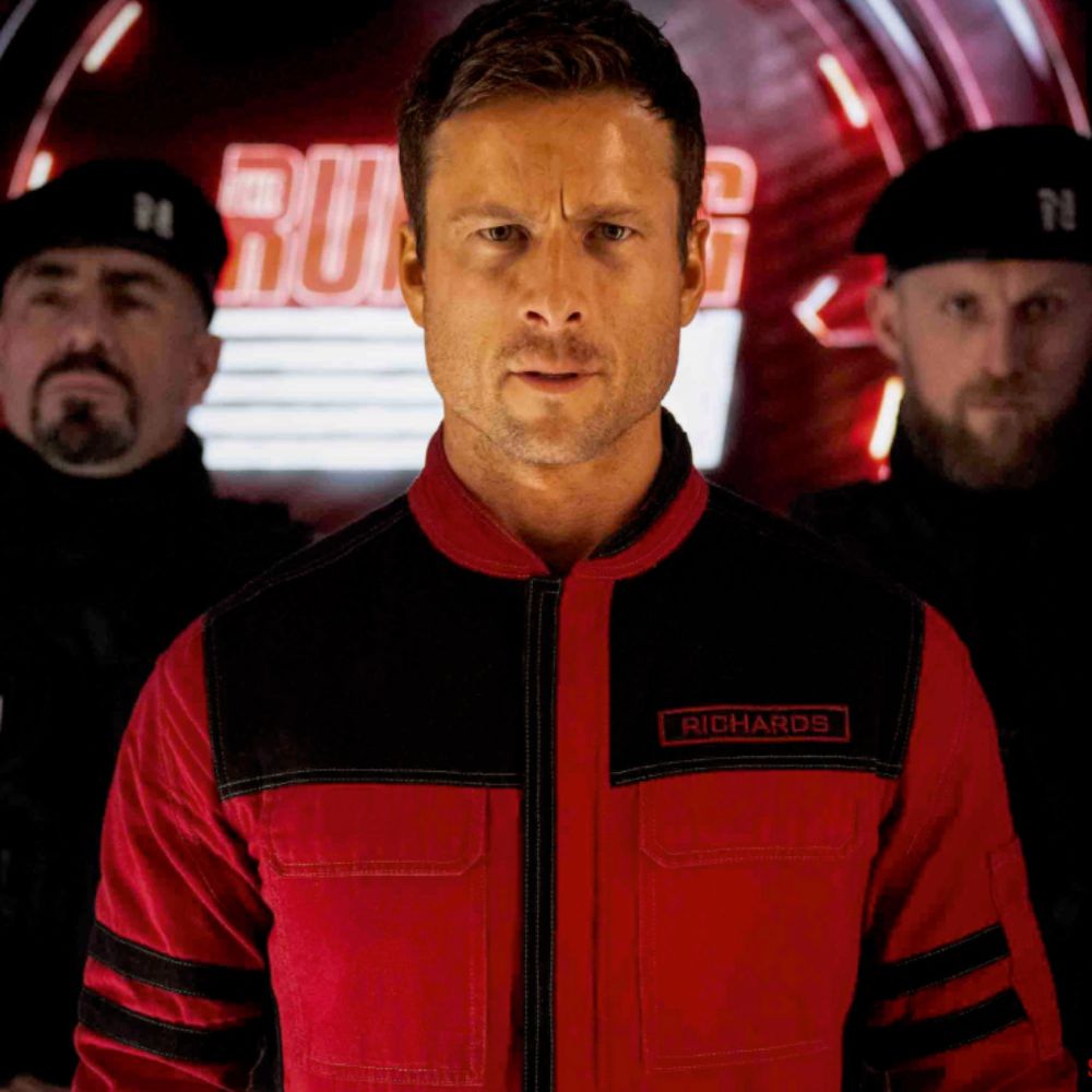 Glen Powell (Ben Richards) Red and Black Runners Jacket