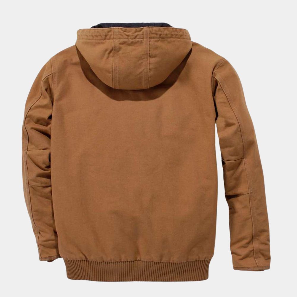 The jacket’s design leans into function and style with equal measure. The soft tan cotton makes it lightweight and comfortable, ideal for movement and action, while the hood adds that extra edge of practicality—perfect for someone constantly on the move. The front zip and open hem cuffs, along with roomy pockets, emphasize readiness and versatility, echoing Ben’s quick-thinking nature. Fans can wear it anywhere—from weekend outings to casual hangouts—whenever they want to channel that cool, understated confidence that Glen Powell brings to the screen.