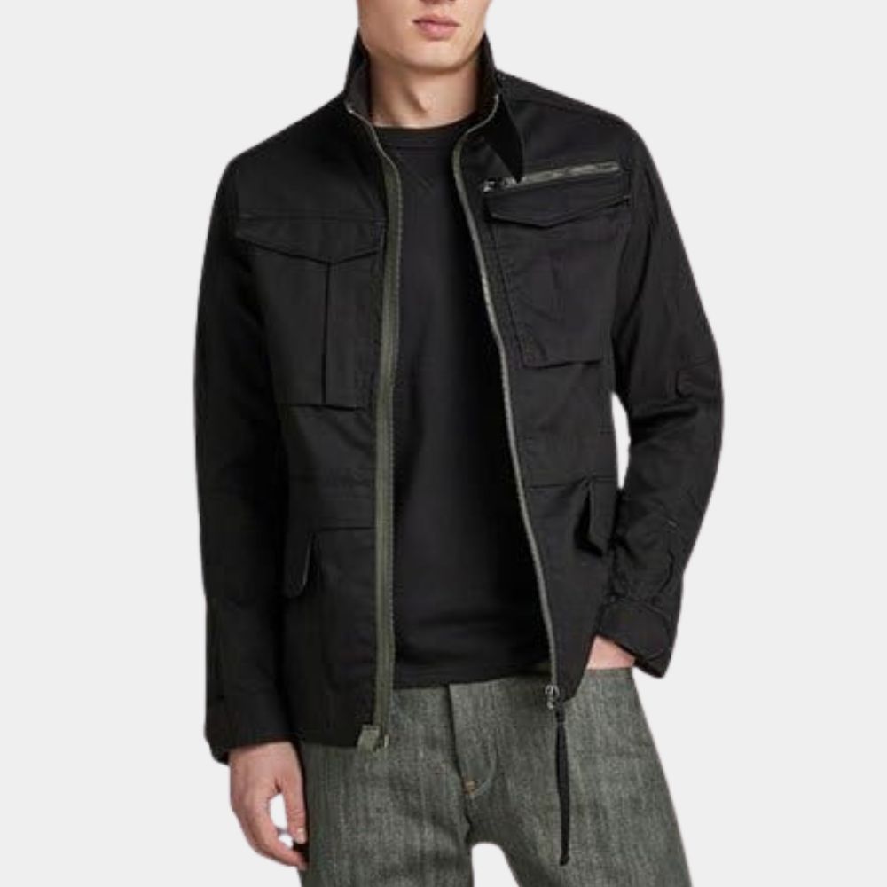 The design takes its cue from classic field jackets, with multiple front pockets, durable cotton construction, and a structured cut that is practical yet stylish. The all black look gives it versatility, allowing it to blend into both action heavy moments and everyday wear.