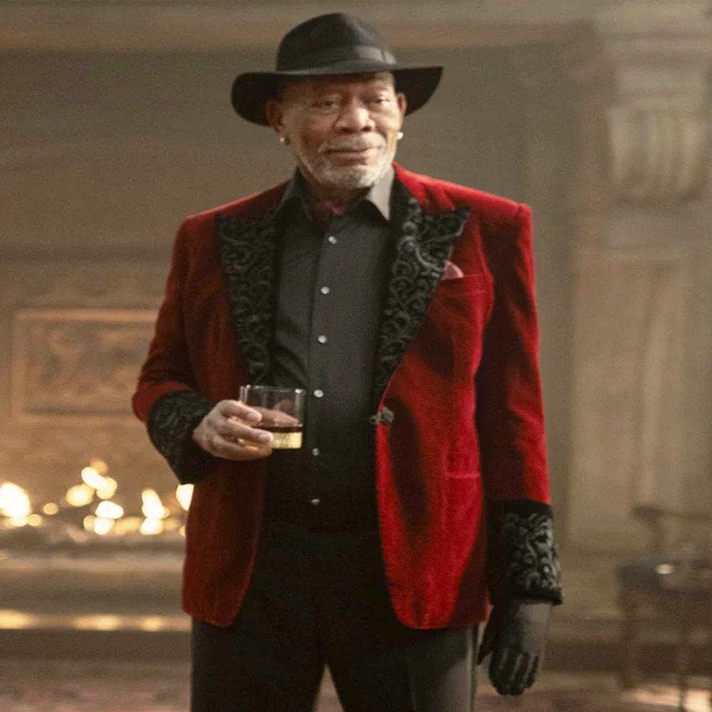 Morgan Freeman as Thaddeus Bradley in Now You See Me: Now You Don’t carries a presence that feels both commanding and mysterious, and his red velvet blazer plays right into that aura. Thaddeus is a master of illusions and deception, someone who thrives on controlling the narrative, and the blazer fits him as a statement piece that exudes confidence and sophistication. The bold red tone adds drama, making him stand out in a world filled with smoke, mirrors, and sleight of hand. It’s not just clothing—it’s part of the performance, reinforcing his role as someone who knows how to captivate an audience and keep them guessing.