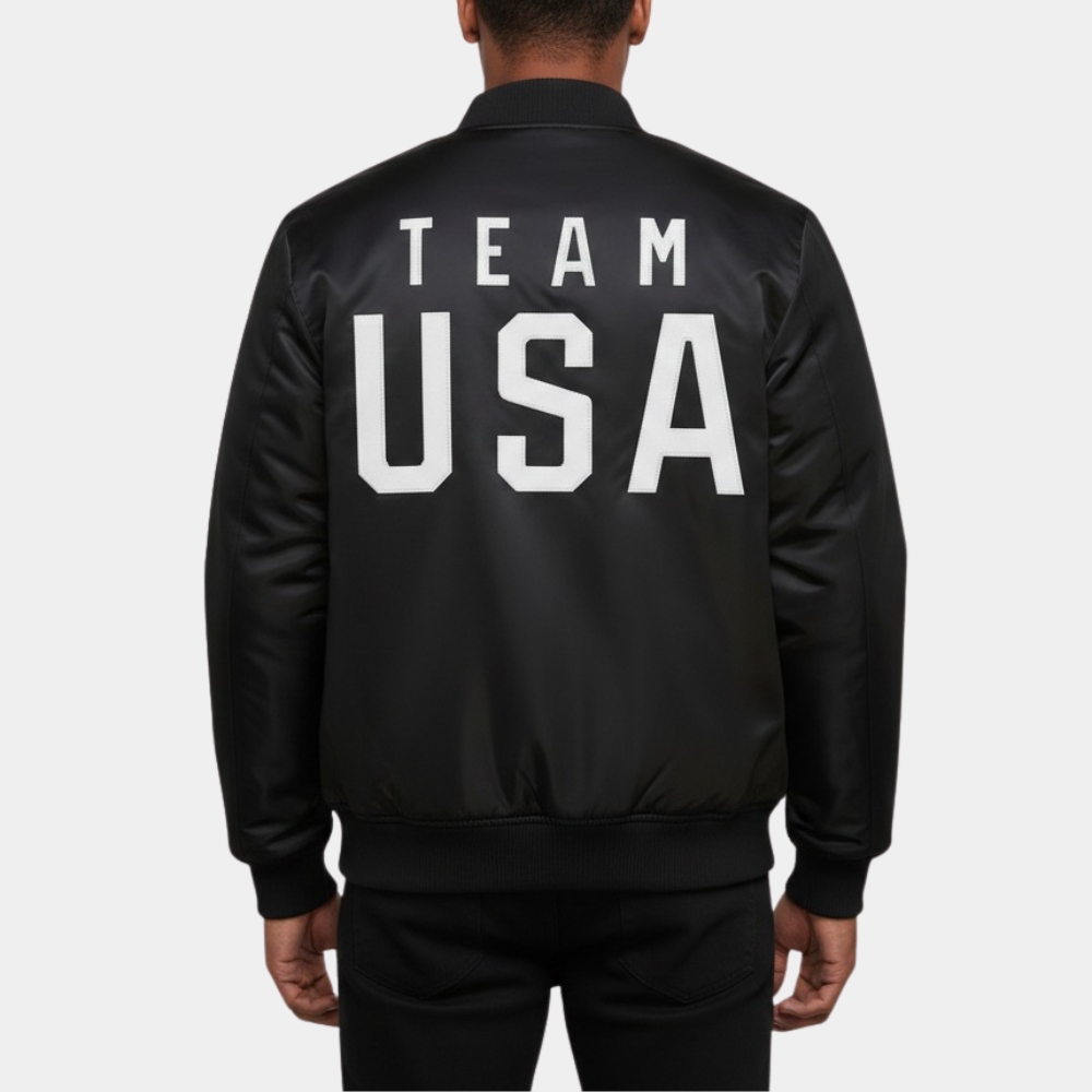 This Team USA jacket channels the unbeatable fire of American athletes storming the Milano Cortina Winter Olympics 2026 closing ceremony, pulling inspiration from stars like a freestyle skier whos story screams small-town grit turning into podium glory after years of wiping out on halfpipes and rising stronger in blizzards. Its born from USA Winter Olympics apparel traditions, rooted in the red white and blue pride of past games where Team USA Opening Ceremony outfit 2026 pieces first hyped the squad with flag-fueled designs straight from Olympic Village tailors blending NYC edge with mountain toughness. The Team USA jacket matches that skier character perfectly because its puffed warmth mirrors their endless training in snowy backcountry spots, red blasting victory vibes like their flag-draped medal walks and white evoking pure ice runs they conquer, all while signifying national unity as athletes from coast to coast link arms in the finale spotlight.