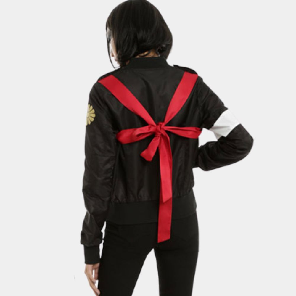 In Suicide Squad Karen Fukuhara as Tatsu Yamashiro better known as Katana wears a black bomber jacket that instantly ties into her fierce yet disciplined persona. Katana is a warrior with a tragic past, defined by loyalty and precision, and the bomber jacket captures that blend of strength and restraint. Traditionally tied to fighter pilots and rebels, the bomber style makes sense for a character who is both a protector and a fighter, carrying a presence that is modern but rooted in tradition. It becomes part of her armor, something that speaks to her resilience while still letting her style show through.
