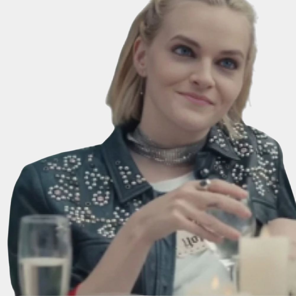 Madeline Brewer’s character Anna in Anniversary carries a sense of quiet intensity, and her black leather jacket fits that mood like it was made for her. The jacket mirrors Anna’s emotional armor—sleek, composed, and just a little mysterious. It reflects her strength and independence, yet there’s an understated vulnerability underneath, much like her journey throughout the story. Leather jackets have always been a go-to piece for characters who live in the grey area between control and chaos, and for Anna, it becomes a symbol of resilience and self-definition in the midst of emotional turmoil.