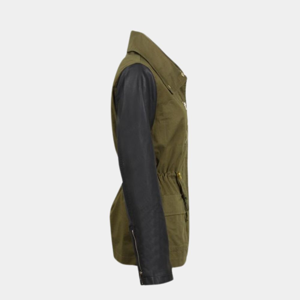 Army Green Cotton Parka Jacket with Leather Sleeves Highlights Green and black Shirt style collar Buttoned with belted closure Zipper cuffs Full length sleeves Two outside pockets, two inside pockets, one zipper pocket on chest Style & Fit 70% Loose fit Body fit True to Size: please check our size […]