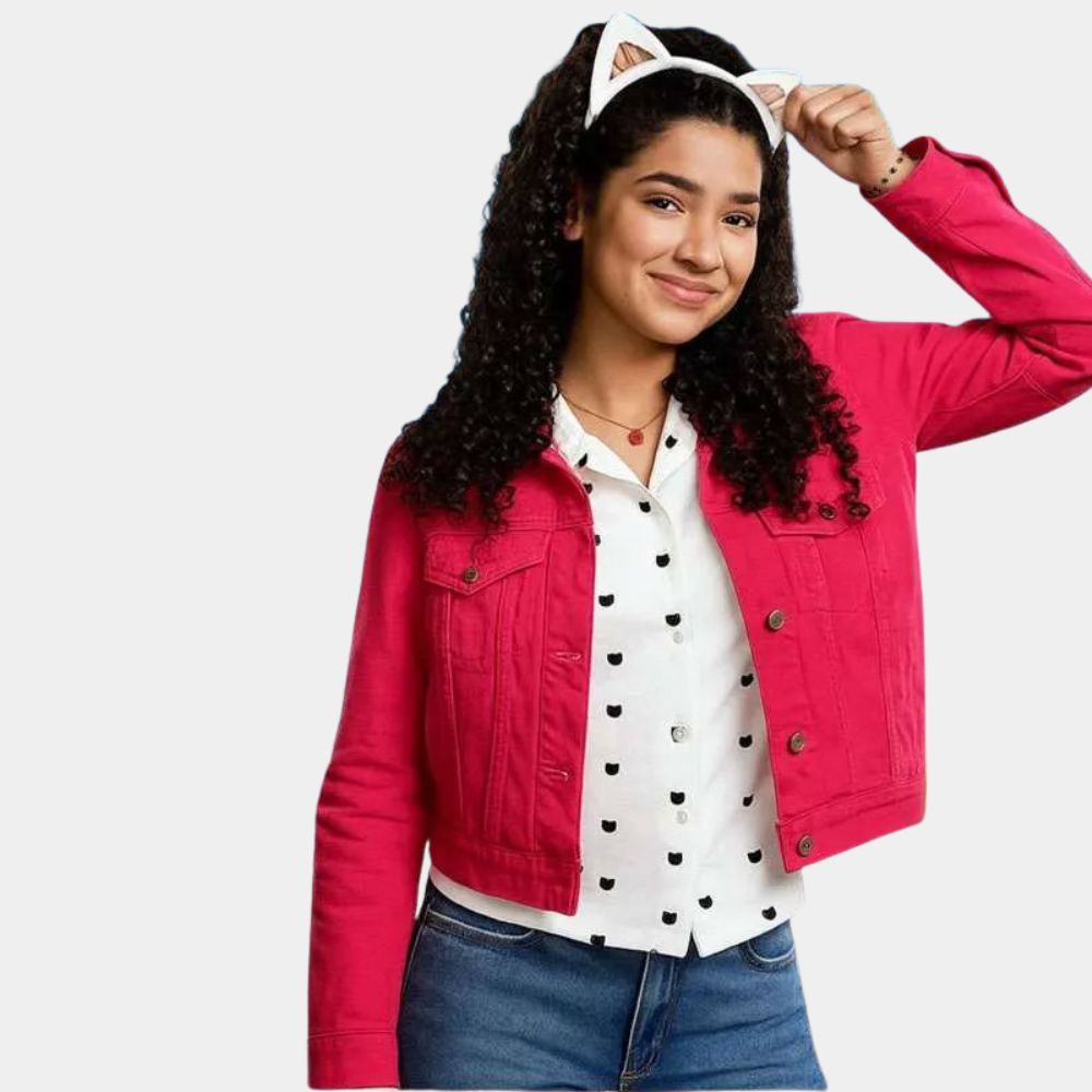 Gabby’s pink denim jacket from Gabby’s Dollhouse perfectly reflects her bright, playful, and adventurous spirit. Inspired by Gabby’s love for creativity and exploring her magical dollhouse world, the hot pink jacket captures that youthful energy with a fun, casual vibe that feels like it belongs in a colorful, imaginative setting. It’s the kind of jacket that feels cozy and approachable, much like Gabby herself, who is always ready to jump into new adventures or help her friends with kindness and creativity.