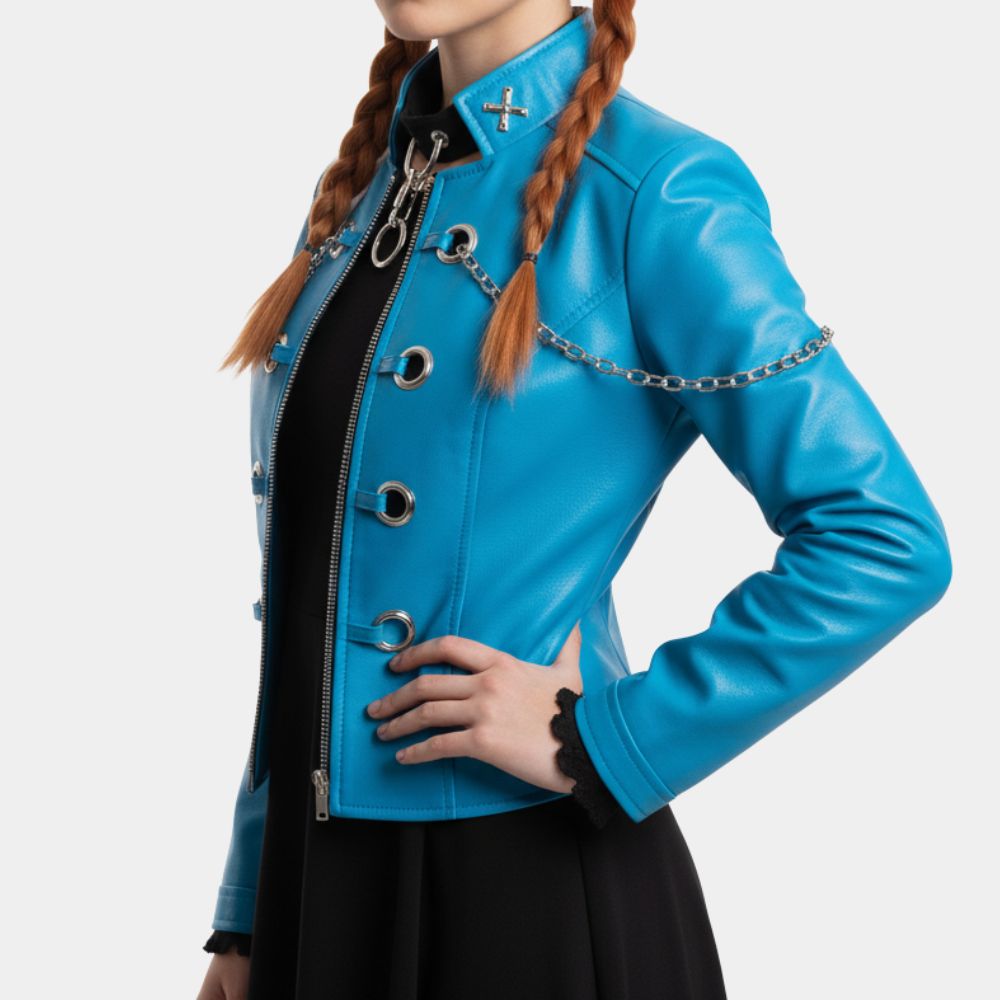 Saki Miyashita’s character Ubu Shinsui in Clockwork Girl 2025 captures that perfect mix of rebellion and quiet complexity, and her blue jacket is a big part of what defines her look. The jacket mirrors her restless energy and independent streak, giving her an edge that feels both futuristic and nostalgic. In a story that explores identity, technology, and the chaos of human emotion, this piece reflects her journey — strong, expressive, and just a bit unpredictable. It draws from the punk-inspired undertones of the film’s world, where fashion isn’t just clothing but a declaration of self.
